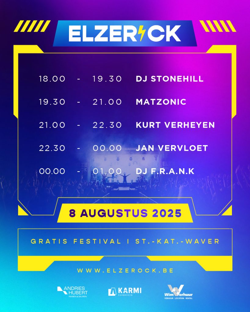 Elzerock keert terug voor zijn 8ste editie! Op 8 & 9 augustus 2025 strijkt het gratis festival opnieuw neer in de schaduw van het prachtige Sint-Michielskasteel. Net als de voorbije jaren geniet je twee dagen lang van een stevige portie live muziek en een gezellige festivalsfeer. Mis het niet!
